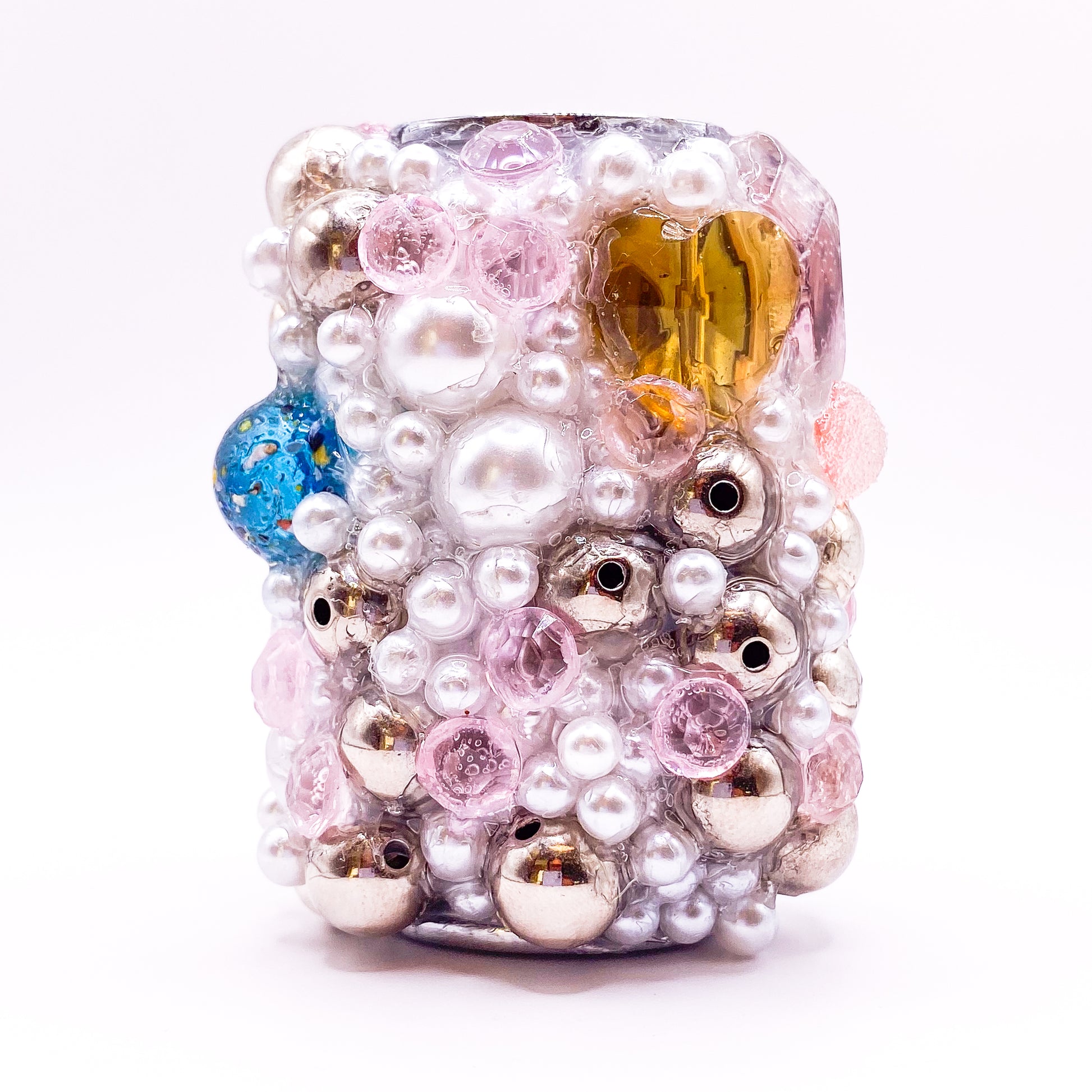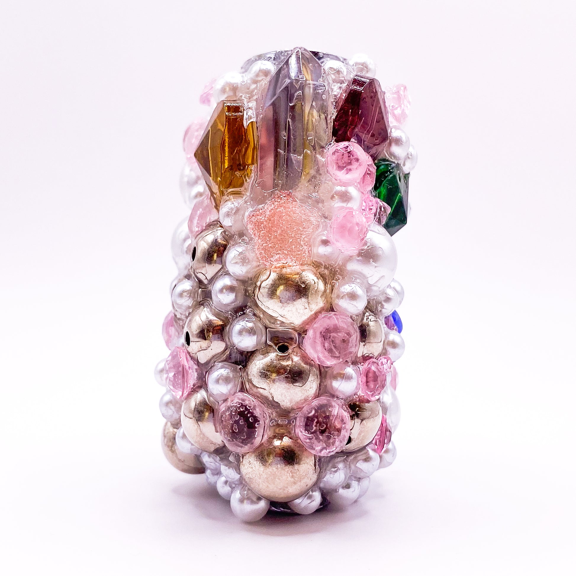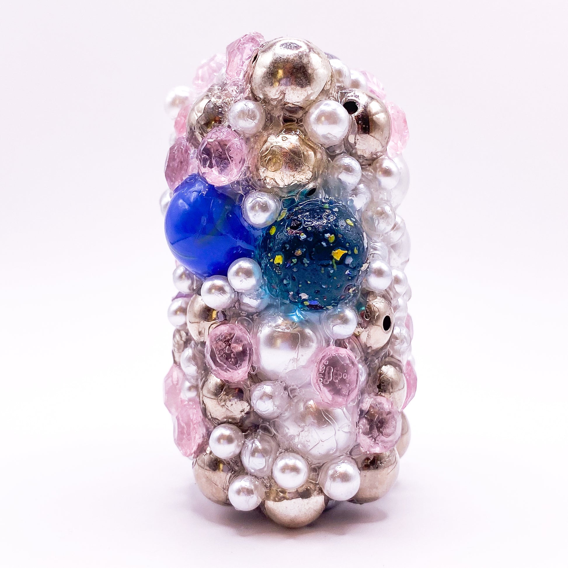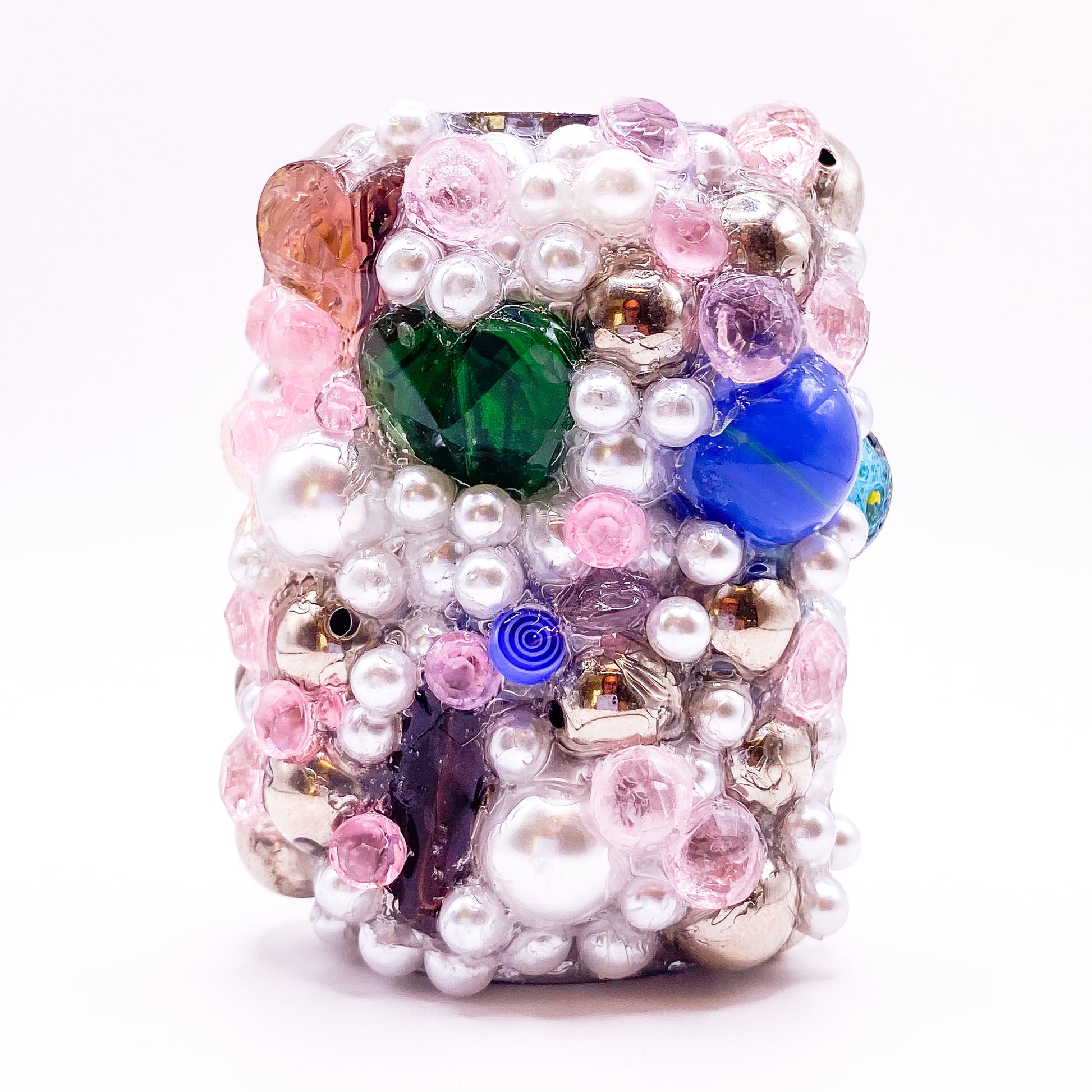 One-of-a-kind handmade lighter sleeve. Gems and beads hand-set on a metal base with industrial-strength adhesive.